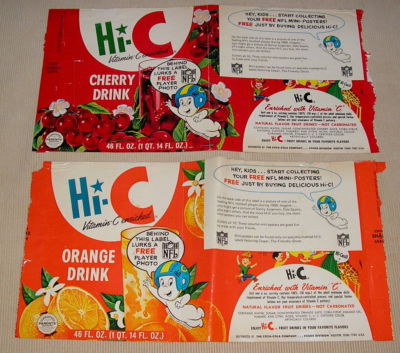 Lot of 2 1969 Coca Cola Hi-C NFL Mini Poster Labels