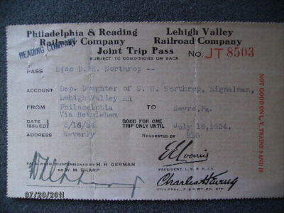 PHILADELPHIA & READING RAILWAY CO 1924 TRIP PASS
