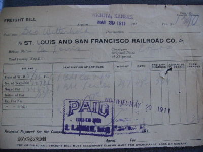 ST LOUIS & SAN FRANCISCO RAILROAD WICHITA 1911 FREIGHT