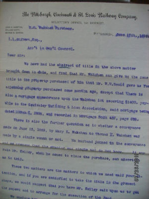 PITTSBURGH CINCINNATI & ST LOUIS RAILWAY 1892 LETTER
