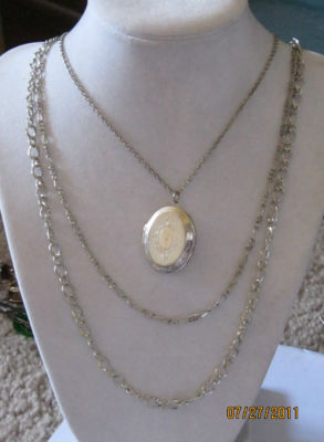 Title (ebay affiliate link): Aunt B's Antique 3 Strand Etched Locket Necklace 23"