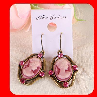 CAMEO Earrings Vintage antique St Crystal Hoop, Pink n2