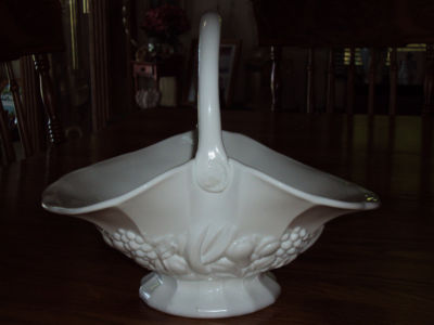 Large Indiana ? Milk Glass Footed Basket Fruit Design