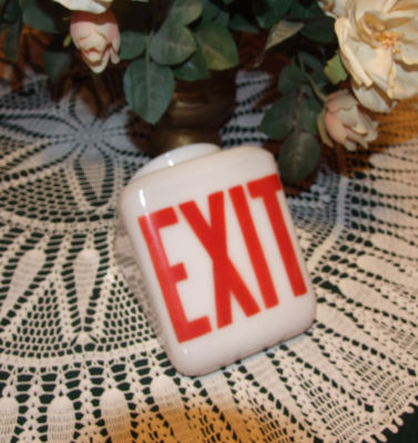 Vintage Red / White Milk Glass EXIT Light Sign Globe