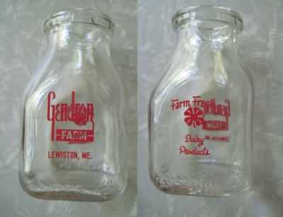 GENDRON 1/2 PINT GLASS MILK BOTTLE