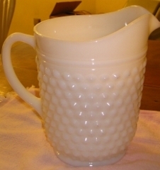 MILK GLASS HOBNAIL AND LINES PITCHER w/LIP AND HANDLE!