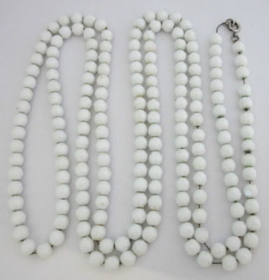 Vintage Faceted Milk Glass Bead Necklace 64"