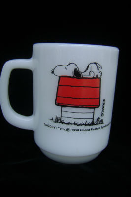FIRE KING MILK GLASS SNOOPY/PEANUTS MUG