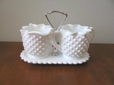 Vintage Hobnail Milk Glass Creamer Sugar Set ?Fenton