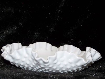 Fenton Hobnail Milkglass Crimped Rim Dish