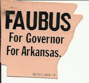 ARKANSAS GOVERNOR ORVAL FAUBUS CAMPAIGN STICKER