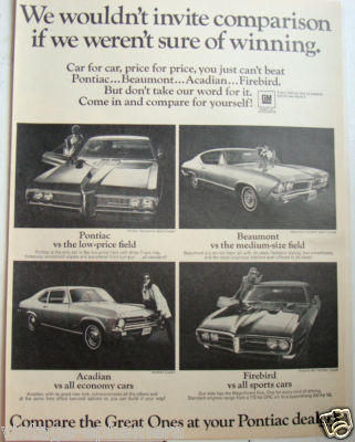 1968 GM PONTIAC ACADIAN FIREBIRD BEAUMONT CAR CANADA AD