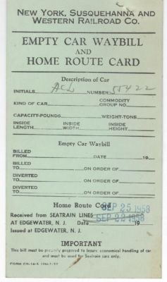 NEW YORK SUSQUEHANNA & WESTERN RR CO EMPTY CAR WAYBILL