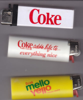 Title (ebay affiliate link): TWO COCA-COLA CIGARETTE LIGHTERS ONE MELLO YELLO