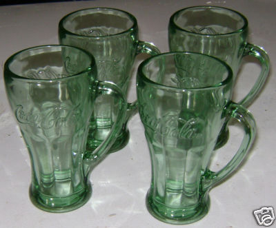 Title (ebay affiliate link): 4 COKE GLASSES W/HANDLE,HEAVY,GREEN/14.5 OZ