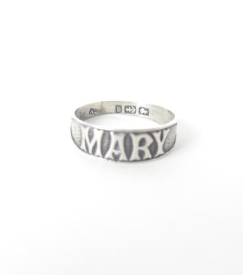 ANTIQUE, VICTORIAN SILVER NAME RING "MARY" 1882