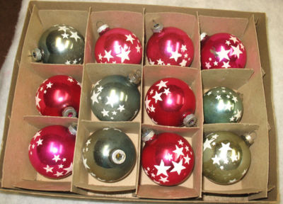 Title (ebay affiliate link): SHINY BRITE CHRISTMAS ORNAMENTS - SILKSCREEN STARS