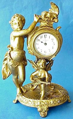 Title (ebay affiliate link): Antique New Haven Cherub Statue Clock w Holy Water Font
