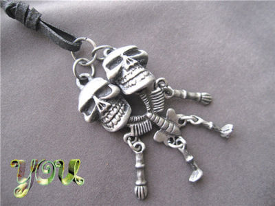 Men's Cool Leather Necklace Antique Skull Multi Pendant