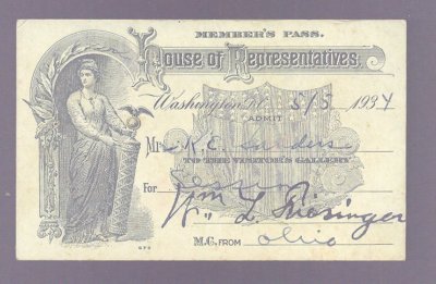Title (ebay affiliate link): May 5, 1934 House of Representatives Member's Pass