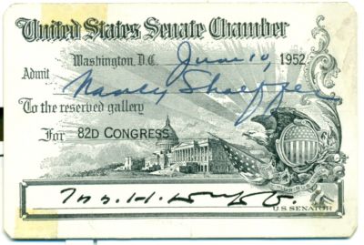 1952 United States Senate Chamber Visitors Gallery Pass