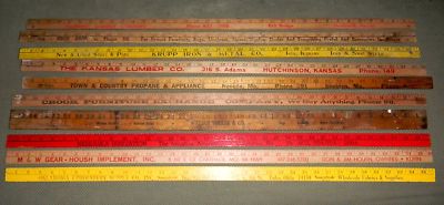 LOT of TEN VINTAGE WOODEN ADVERTISING YARDSTICKS