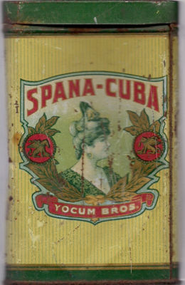 vintage "spana-cuba" cigar tin c. 1920-yocum bros.