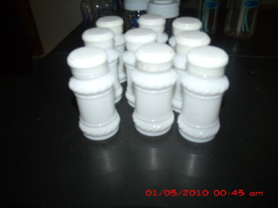 10 milk WHITE SPICE JARS, SPICE BOTTLES 10 MILK GLASS E
