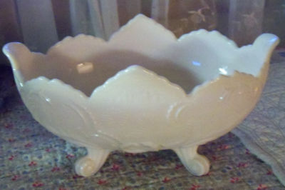 LOVELY OLD PINK MILK GLASS ORNATE OVAL BOWL/PLANTER