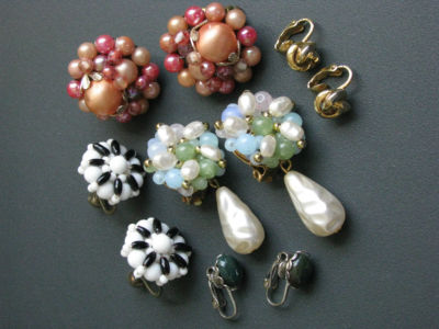 Vintage 5 Pair Earring Lot: Milkglass,JAPAN,Faux Pearls