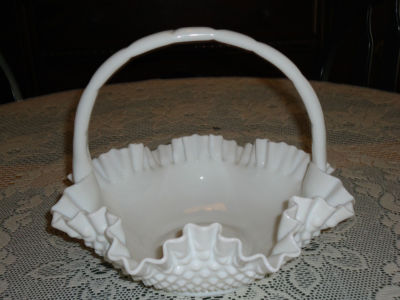 Fenton Milk Glass Hobnail Double Crimped 10" Basket