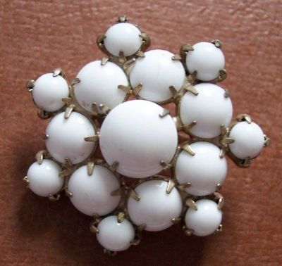 Vintage Brooch Pin Rhinestone White MILK GLASS STone