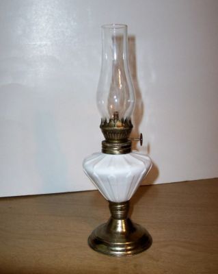Minature Kerosene Oil Lamp -WHITE MILK GLASS-
