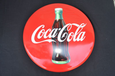 Title (ebay affiliate link): Vintage 16" Round Coca Cola Metal Button Sign 1992