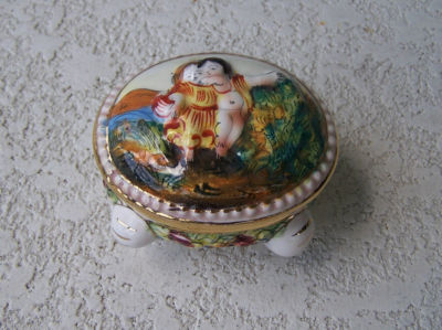 ANTIQUE CAPODIMONTE PILL BOX W GREAT DETAILS & MARKED