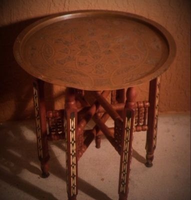 Title (ebay affiliate link): Moorish Moroccan Tea Table Brass Top W Inlaid Base