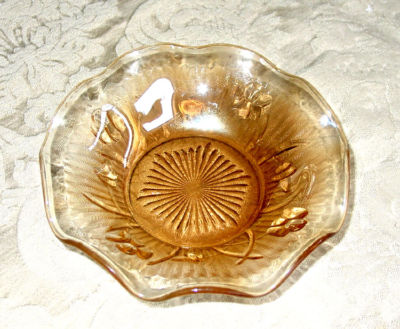 Title (ebay affiliate link): Depression Glass Iridescent Iris 5" Ruffled Bowl CUTE!!