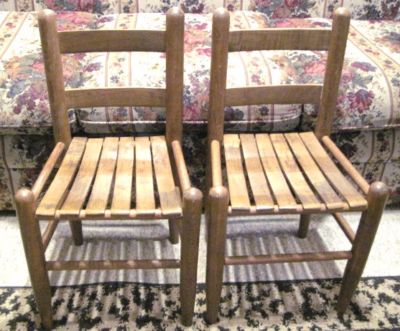 Title (ebay affiliate link): SET OF 2 CHILDRENS VINTAGE ANTIQUE WOODEN SLAT CHAIRS
