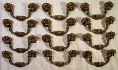 Set of 12 Antique Brass Furniture Drawer Pulls 3 inch