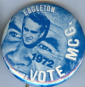 Title (ebay affiliate link): McGOVERN, EAGLETON UNUSUAL DESIGN 1972 JUGATE PIN