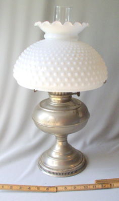OIL KEROSENE RAY LAMP NICKEL PLATED CA 1890 MILK GLASS