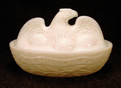 1898 McKee White Milk Glass "American Hen" Candy Dish