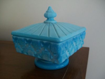 Westmoreland Blue Milk Glass Old Quilt Candy Dish