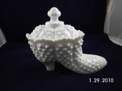 Hobnail Milk Glass Lidded Shoe