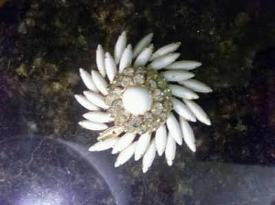 Judy Lee Milk Glass and Rhinestone Pin/Brooch