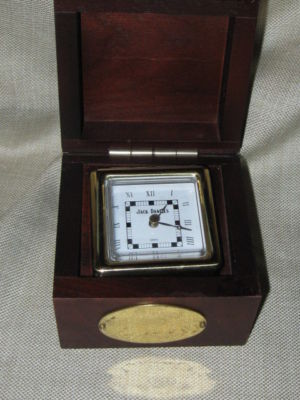 JACK DANIELS WOODBOX CLOCK, WORKS, GOOD CON;