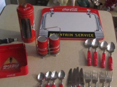 Title (ebay affiliate link): LOT OF COCA COLA ITEMS, SILVERWARE, SALT PEPPER, BOARD