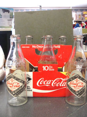 Empty 6 Pack 75th Anniversary Coca-Cola Bottles (1976)