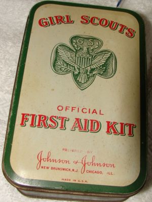 OLD GS GIRL SCOUT FIRST AID TIN WITH ANTIQUE ARROWHEADS