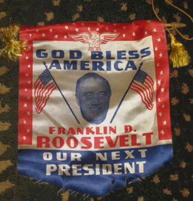 1940 FDR ROOSEVELT GOD BLESS AMERICA SILK BANNER